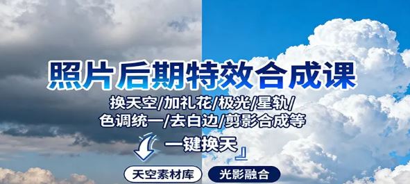 这是一套专为风光摄影师打造的换天空后期合成实战教程,系统讲解40种天空特效合成技巧,涵盖烟花、萤火虫、极光、银河等梦幻元素的添加方法,以及天空替换、色调统一、透视调整等核心技术,帮助学员快速掌握提升作品视觉冲击力的关键技能。